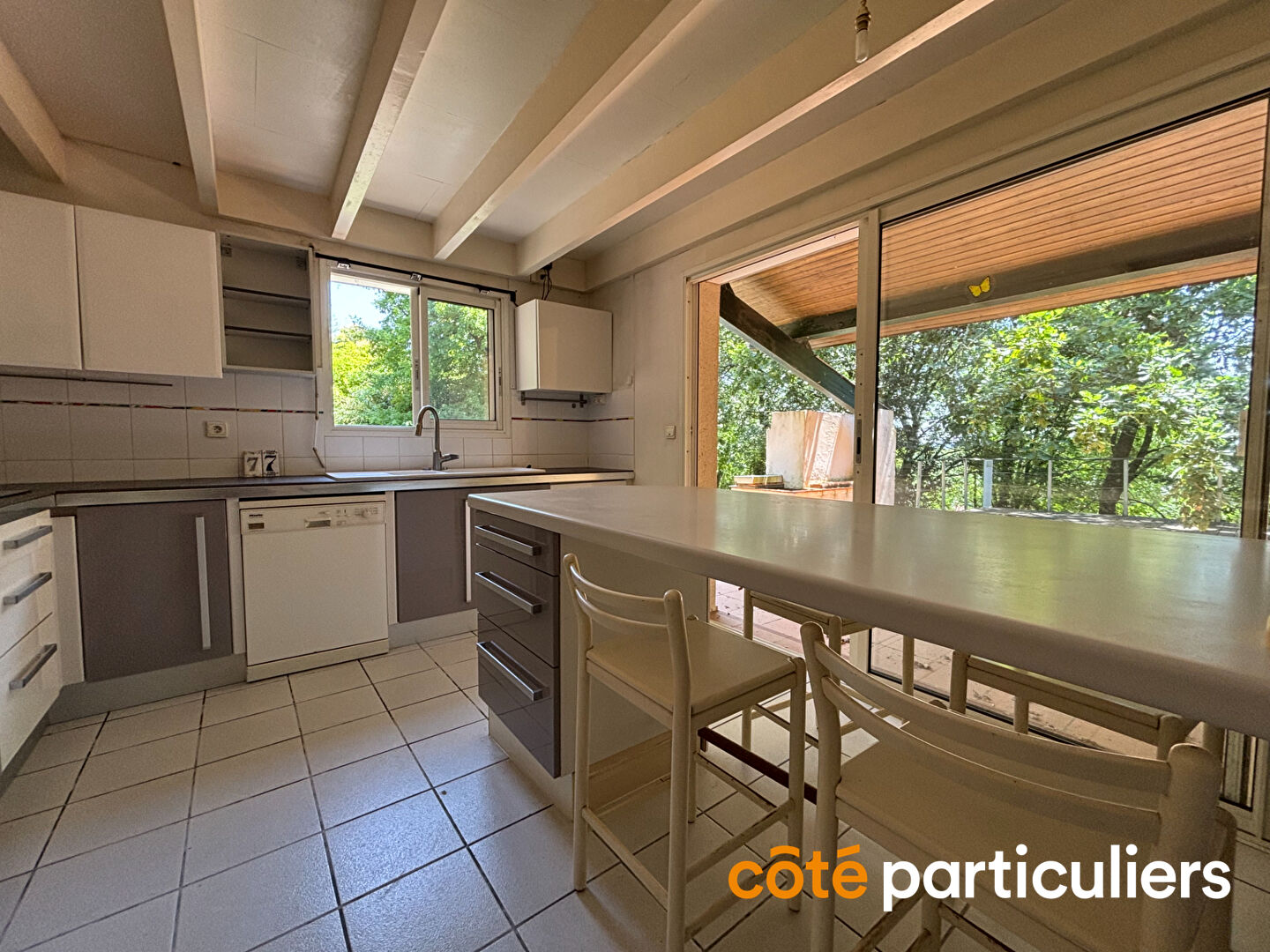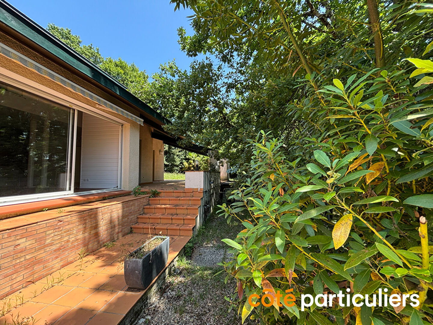 Quartier recherché et résidentiel, maison d'architecte de 150 m² sur une parcelle de 2 200 m² arborée exposée plein sud avec une vue dominante sur Agen. Le rez de chaussée se compose d'une belle pièce de vie baignée de lumière par ses baies vitrées donnant sur une grande terrasse partiellement couverte, d'une cuisine séparée, dotée d'une arrière cuisine. Sur le même niveau, le coin nuit dispose de trois chambres et d'une salle de bains complète avec douche et baignoire et d'une buanderie. Le 1er étage se compose de deux chambres (dont une avec douche et lavabo) et d'une pièce palière pouvant servir de bureau. Cet ensemble se complète d'un garage double, d'un carport et de 2 caves. Les choses à savoir : menuiseries alu, volets électriques, poêle à granules, portail électrique, taxe foncière 2 171€.